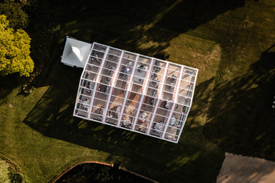 At 5:45pm, guests made their way into the marquee — beautifully dressed by Boom Ting Bunting with Miller Marquees providing the structure. The London Function Band were already on stage. And when Sea & Luke made their entrance at 6pm, what followed was something we'll genuinely never forget.